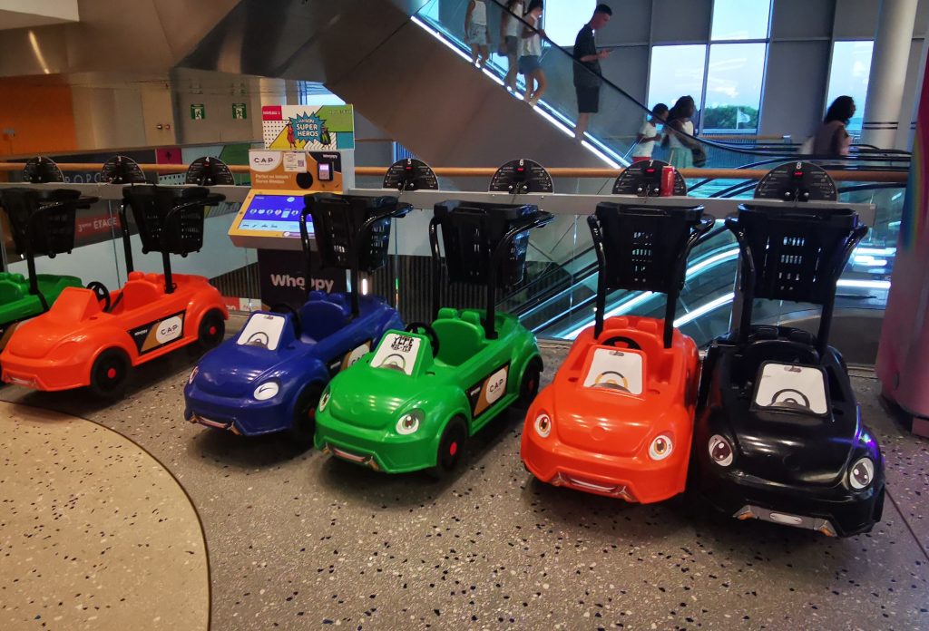 La location de voiturette est proposée aux deux bornes prévues à cet effet à l’entrée du centre (coté nord) et au niveau la sortie des ascenseurs (coté sud). Forfait de 3 euros payable par carte bancaire, durant toute votre balade à Cap3000. A restituer à l’une des deux bornes de locations.